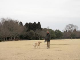 ケンタに運動をさせようと、8mの伸縮リードにつなぎ替えて走り回りました。