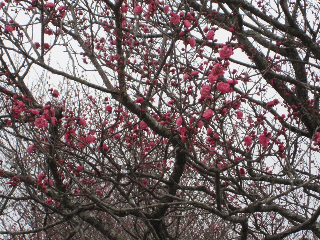 最初に目に入ってきた梅林は、ほとんど咲いていない木ばかりでした。